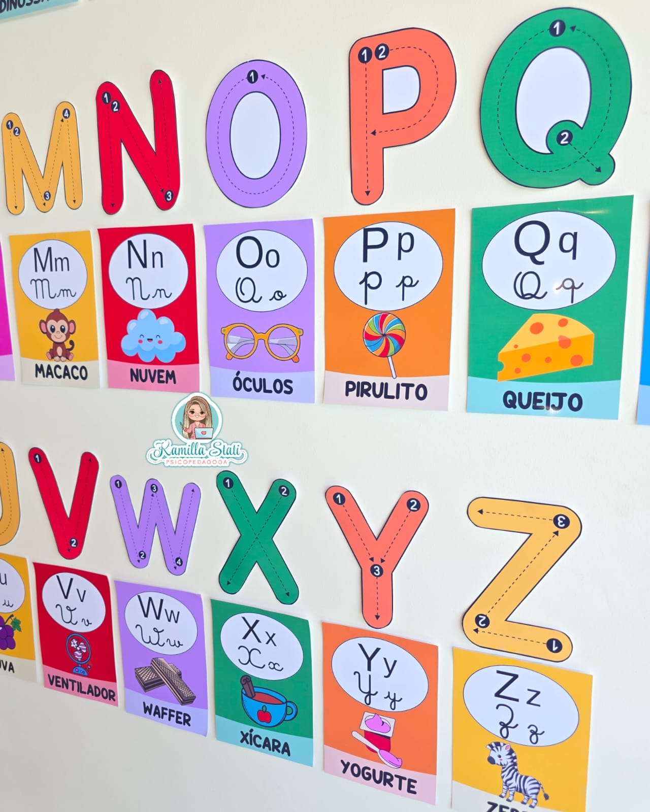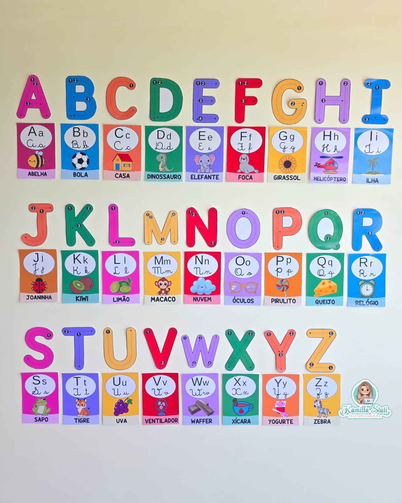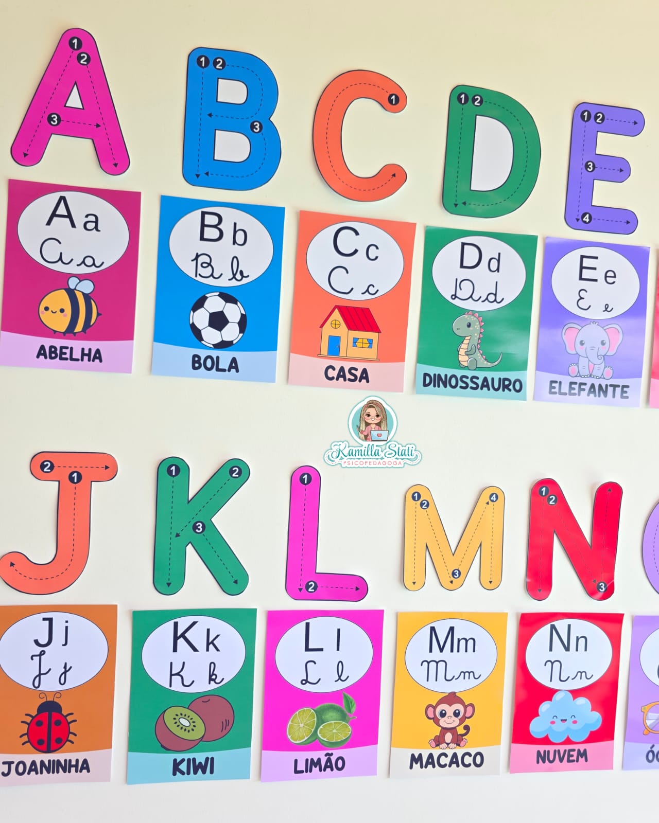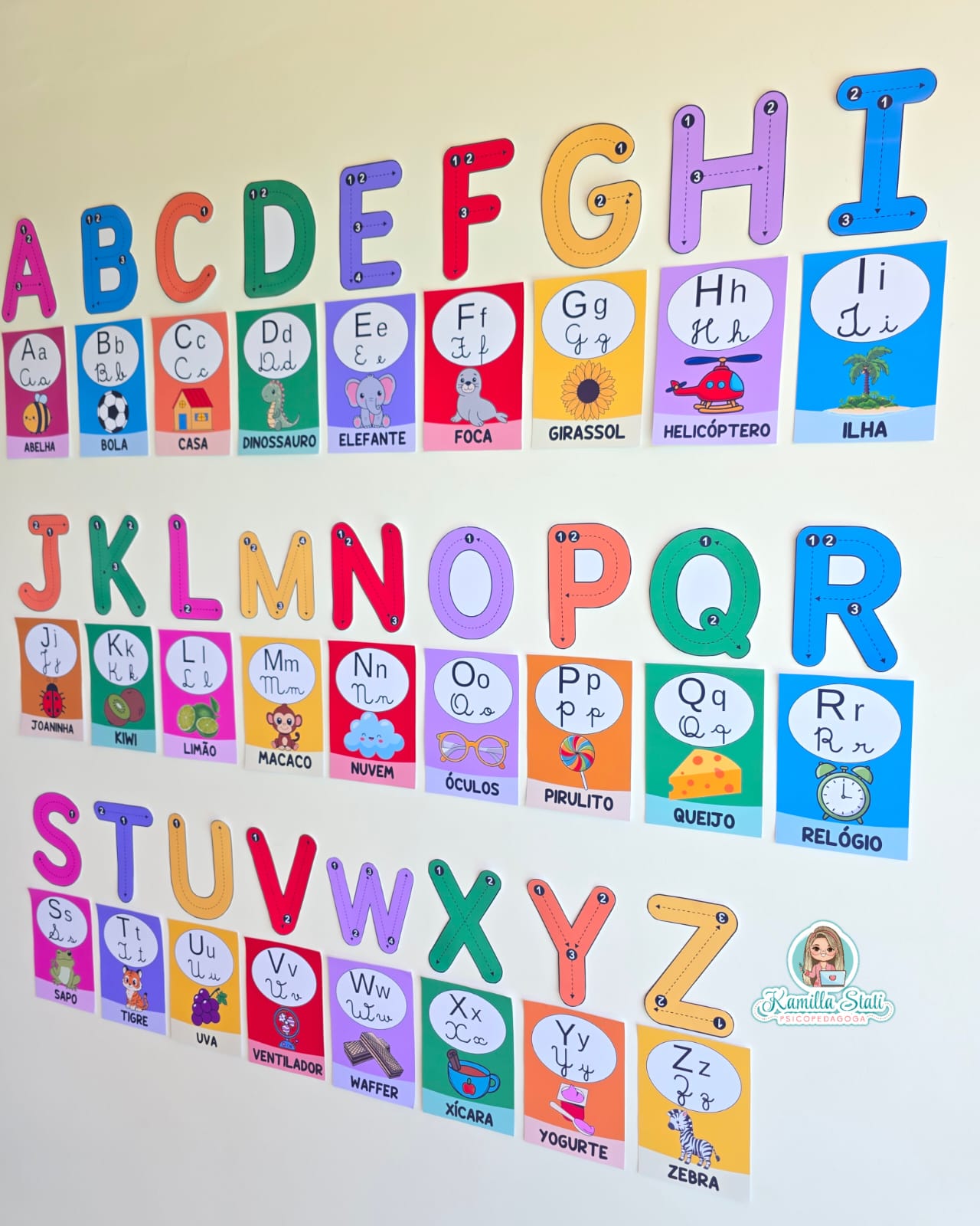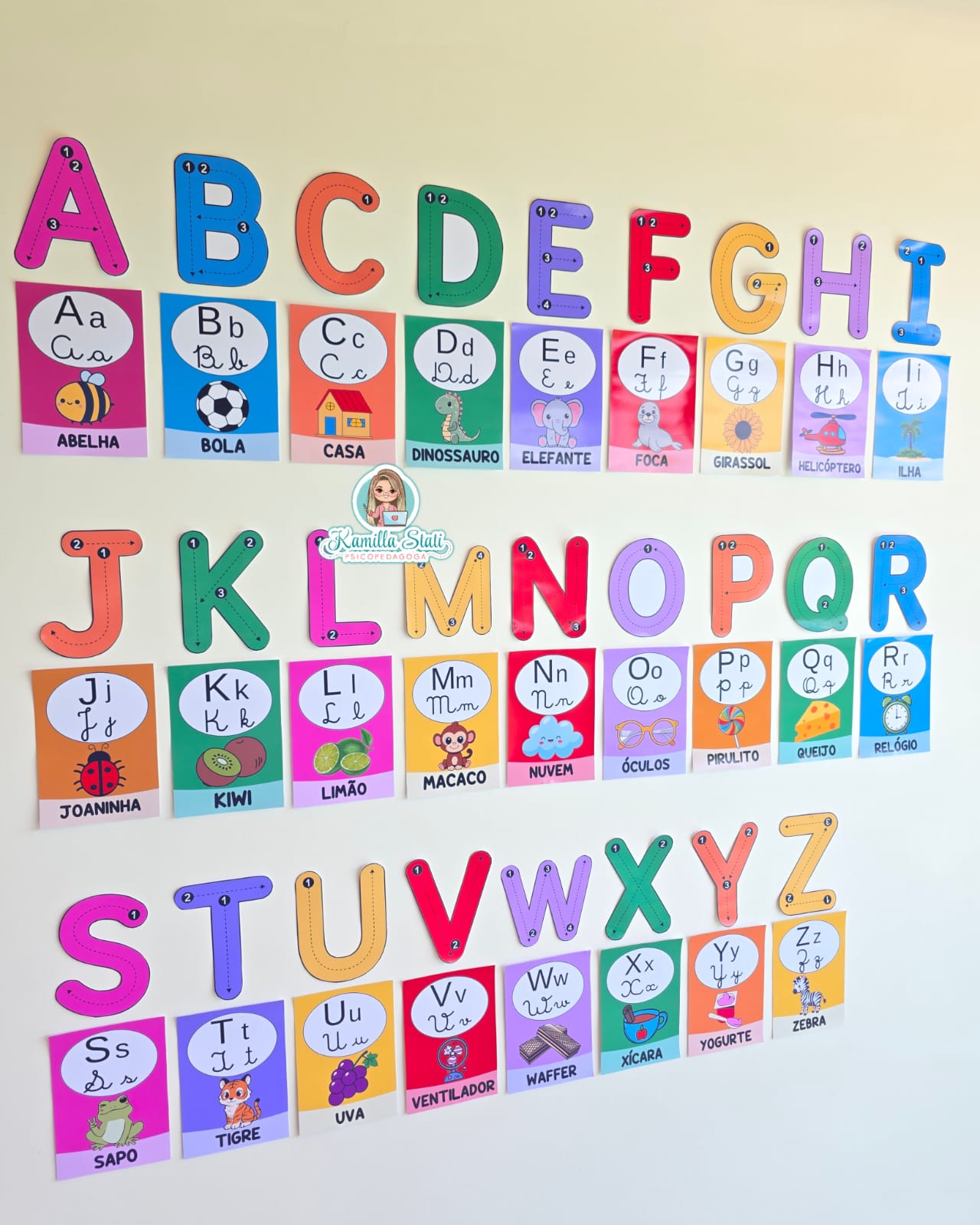 🪄O alfabeto de parede funciona como apoio visual permanente para o processo de alfabetização.