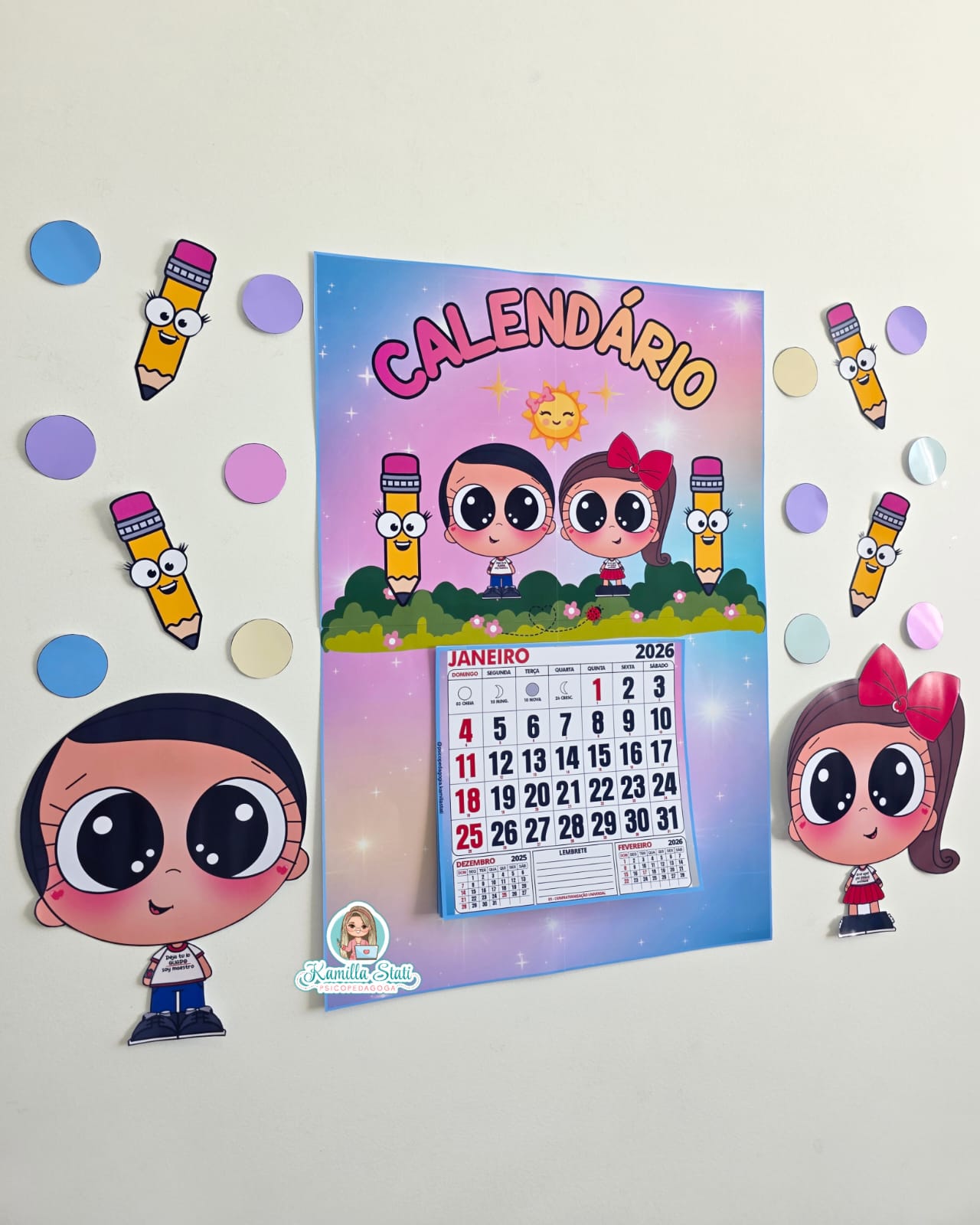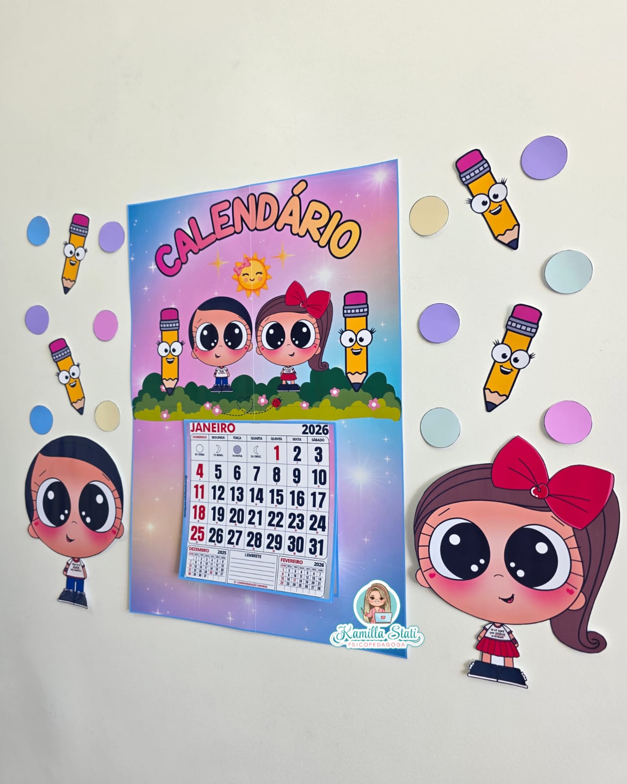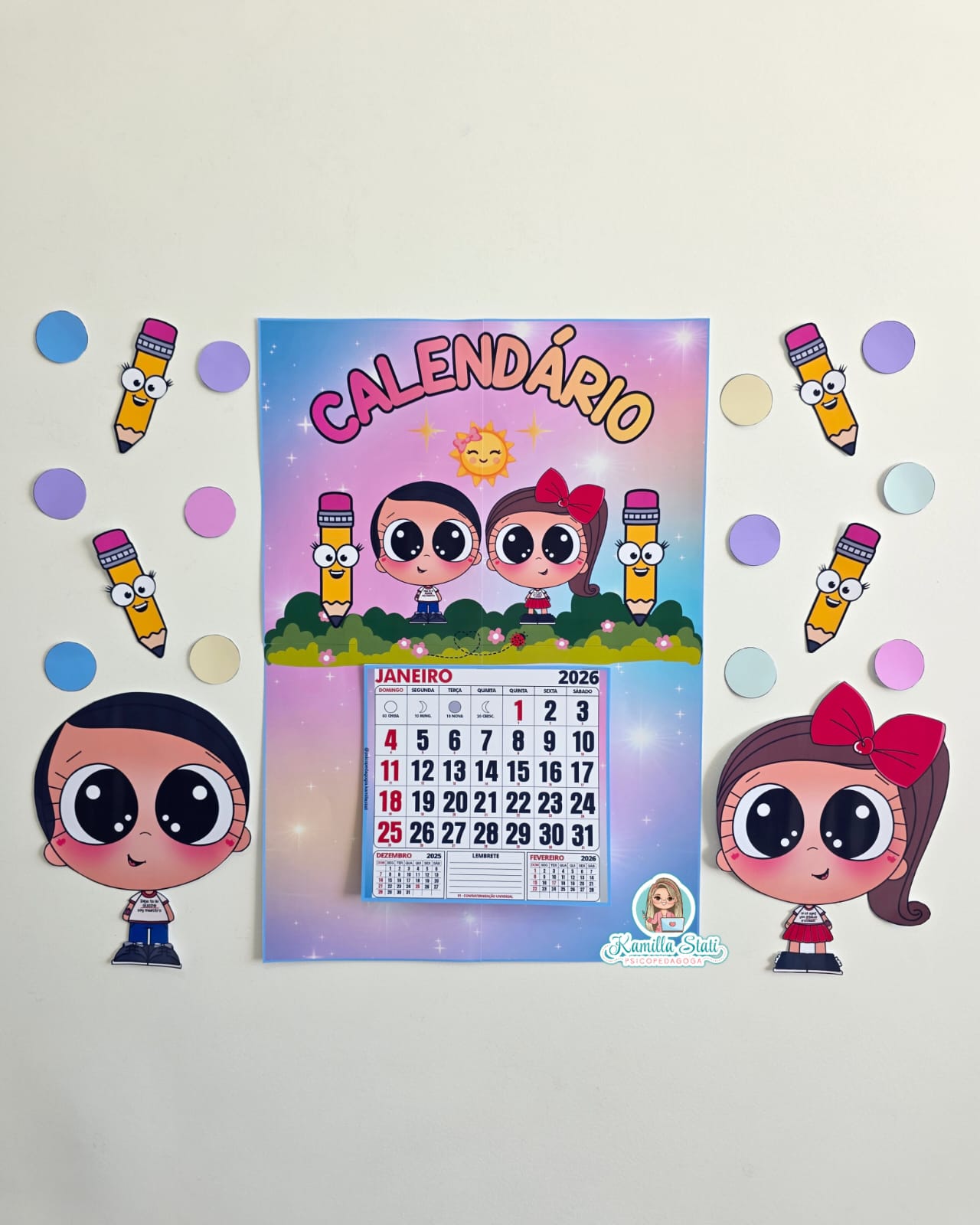 O Calendário de Parede Crianças 2026 é perfeito para deixar o ambiente escolar ou o cantinho de estudos mais alegre, organizado e acolhedor. Com ilustrações delicadas e linguagem visual infantil, ele auxilia na organização da rotina e na construção da noção de tempo de forma lúdica.