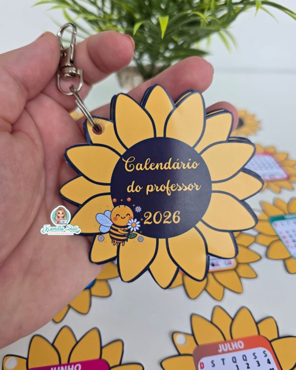 Chaveiro calendário girassol 2026