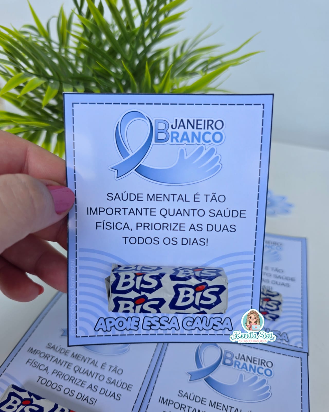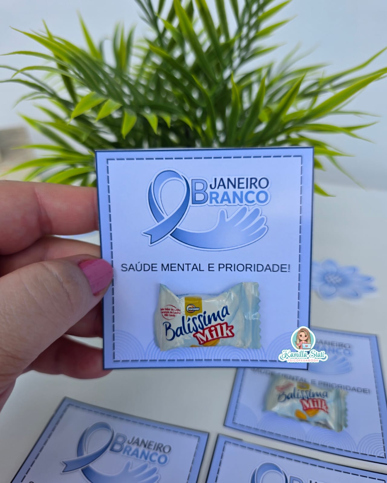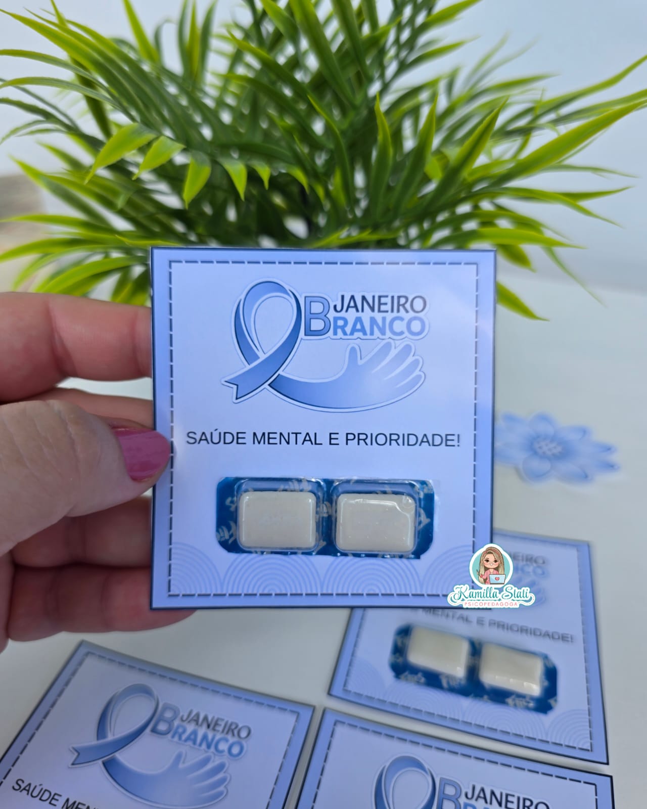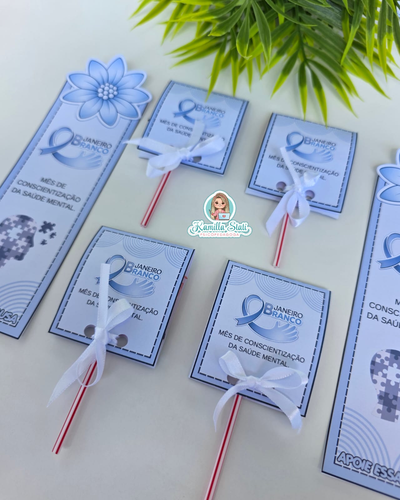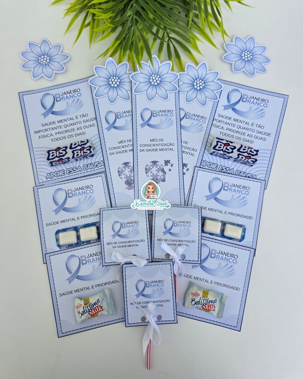 As lembrancinhas perfeitas para fortalecer a campanha Janeiro Branco e incentivar o cuidado com a saúde mental de forma leve, acolhedora e significativa. Ideal para ações em escolas, unidades de saúde, clínicas, repartições públicas, igrejas e eventos de conscientização. Contém: