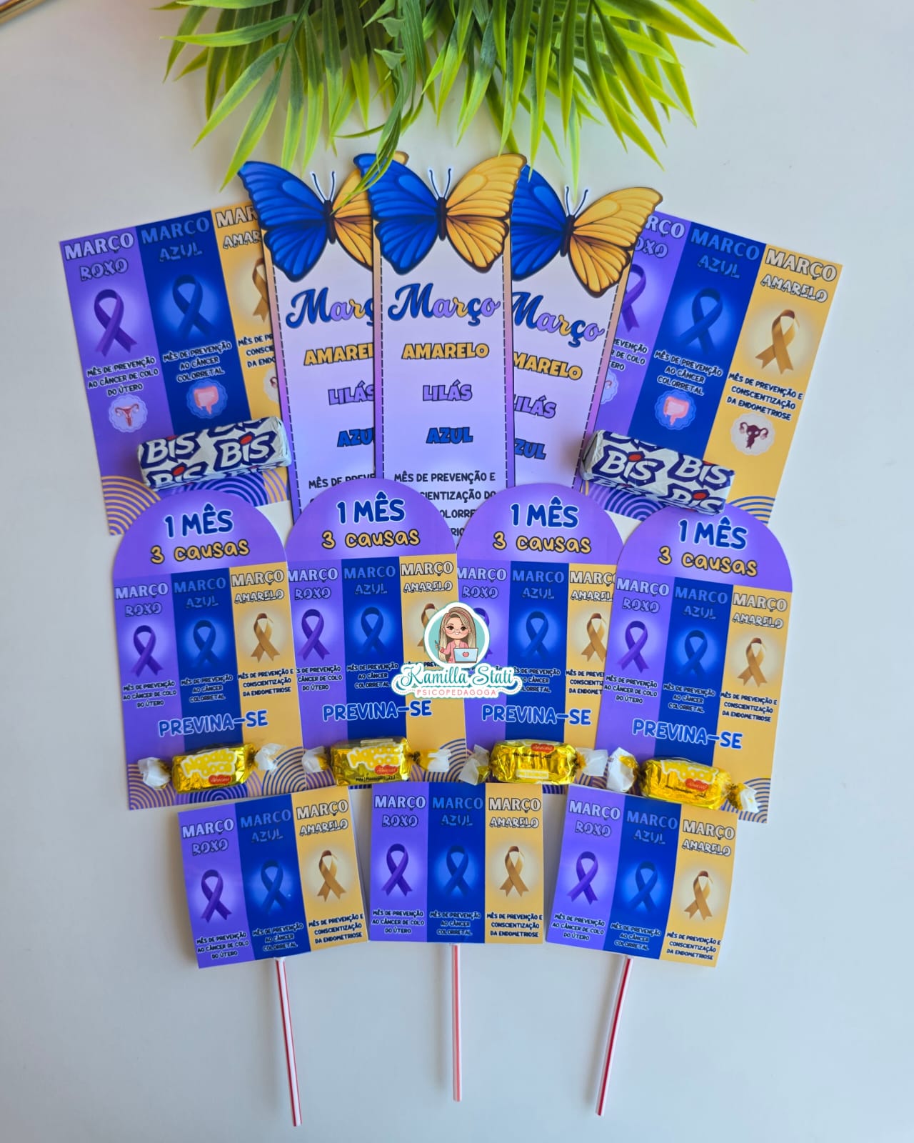 Lembrancinhas março azul, amarelo e lilás