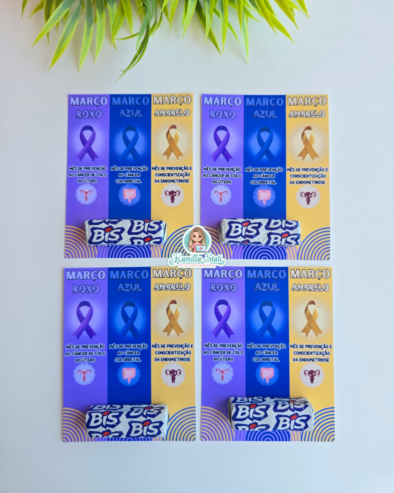 Perfeitos para conscientizar as pessoas sobre a importância de combater o câncer de colo do útero, endometriose e câncer colorretal.