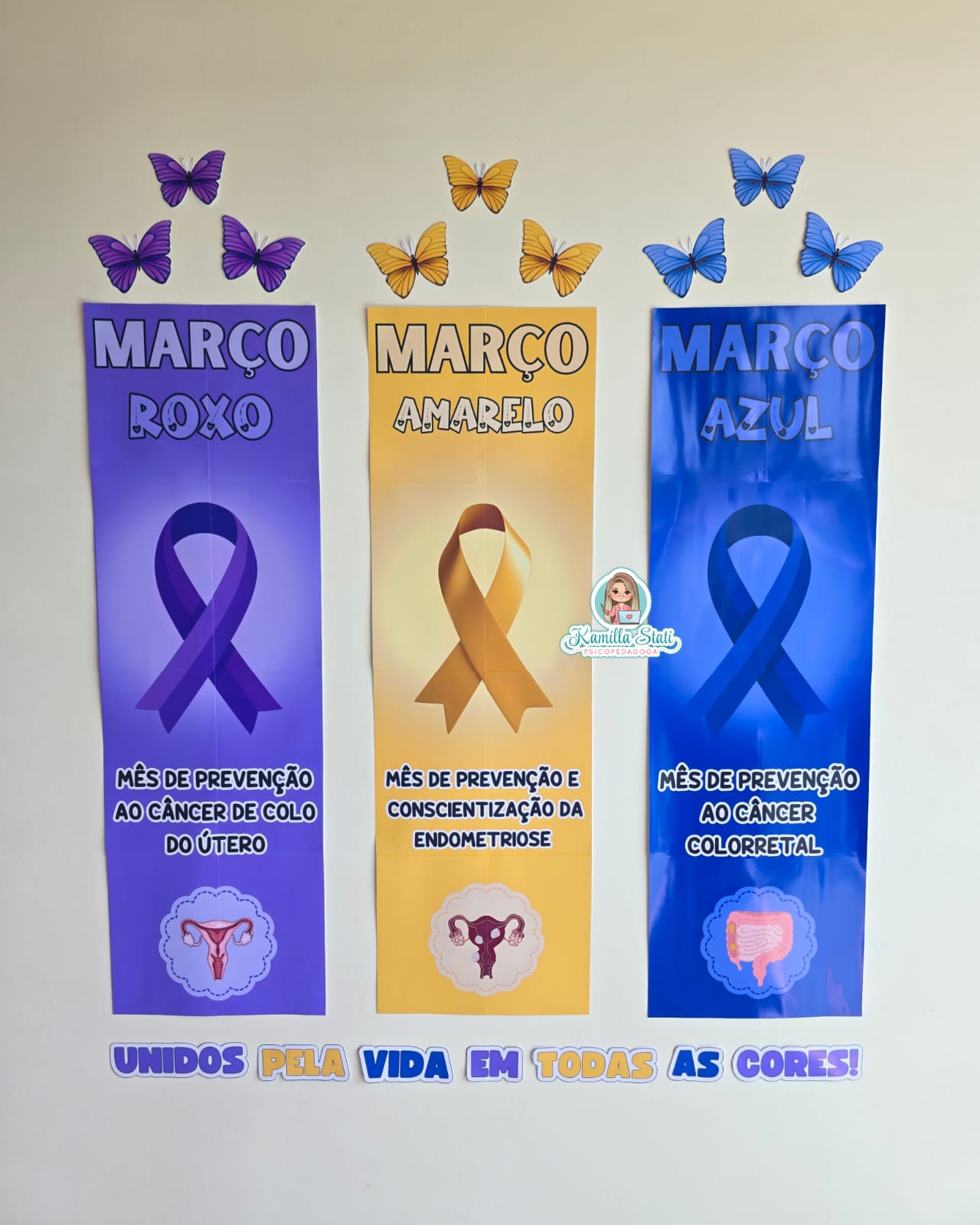 Painel março azul, amarelo e lilás