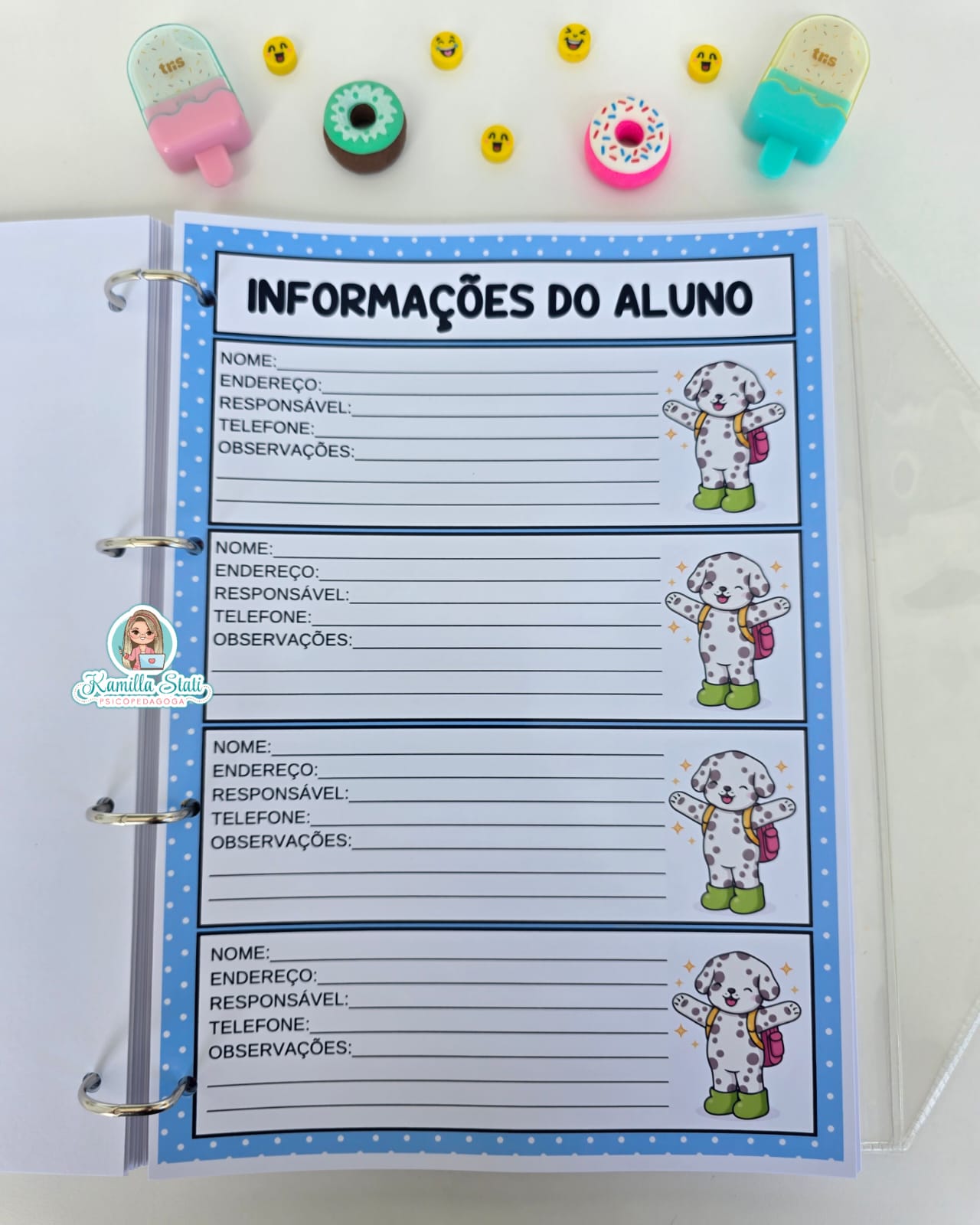✅ Fichas detalhadas para cada aluno: aniversários, informações individuais, tarefa de casa, trabalhos escolares, notas e comportamento.