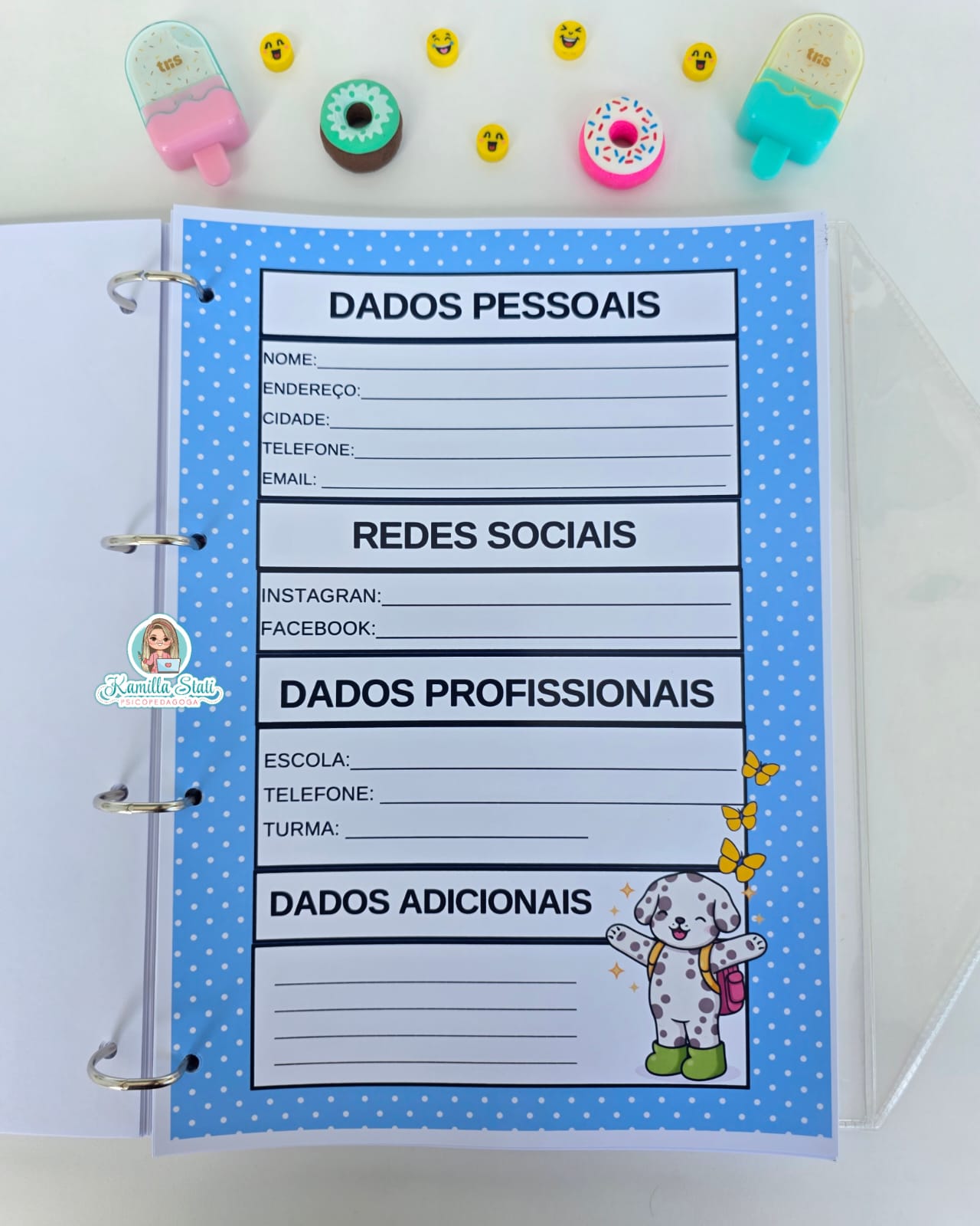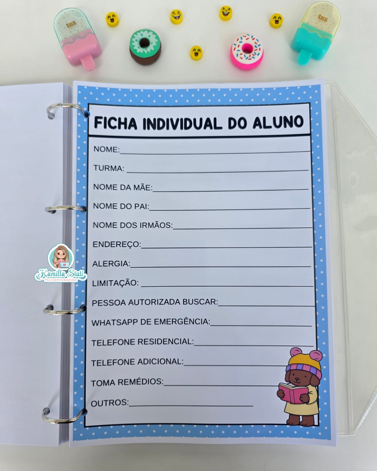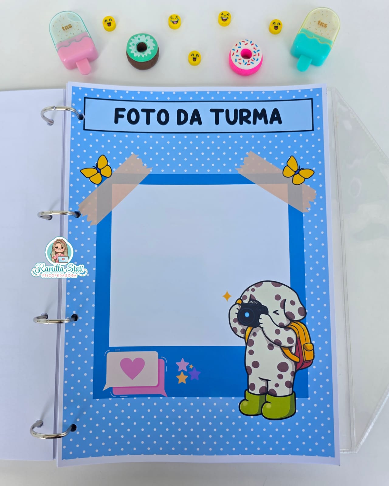 ✅ Espaços para dados pessoais, foto da turma e metas para 2026.