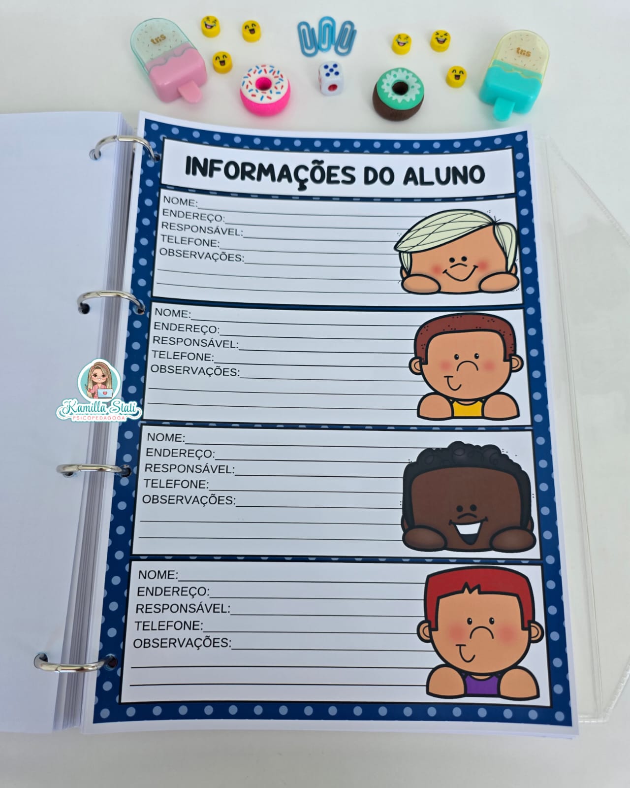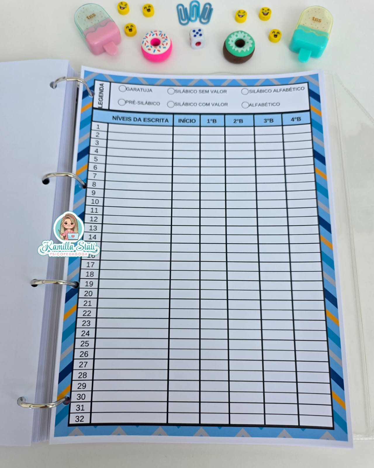 ✅ Espaços para dados pessoais, foto da turma e metas para 2026.