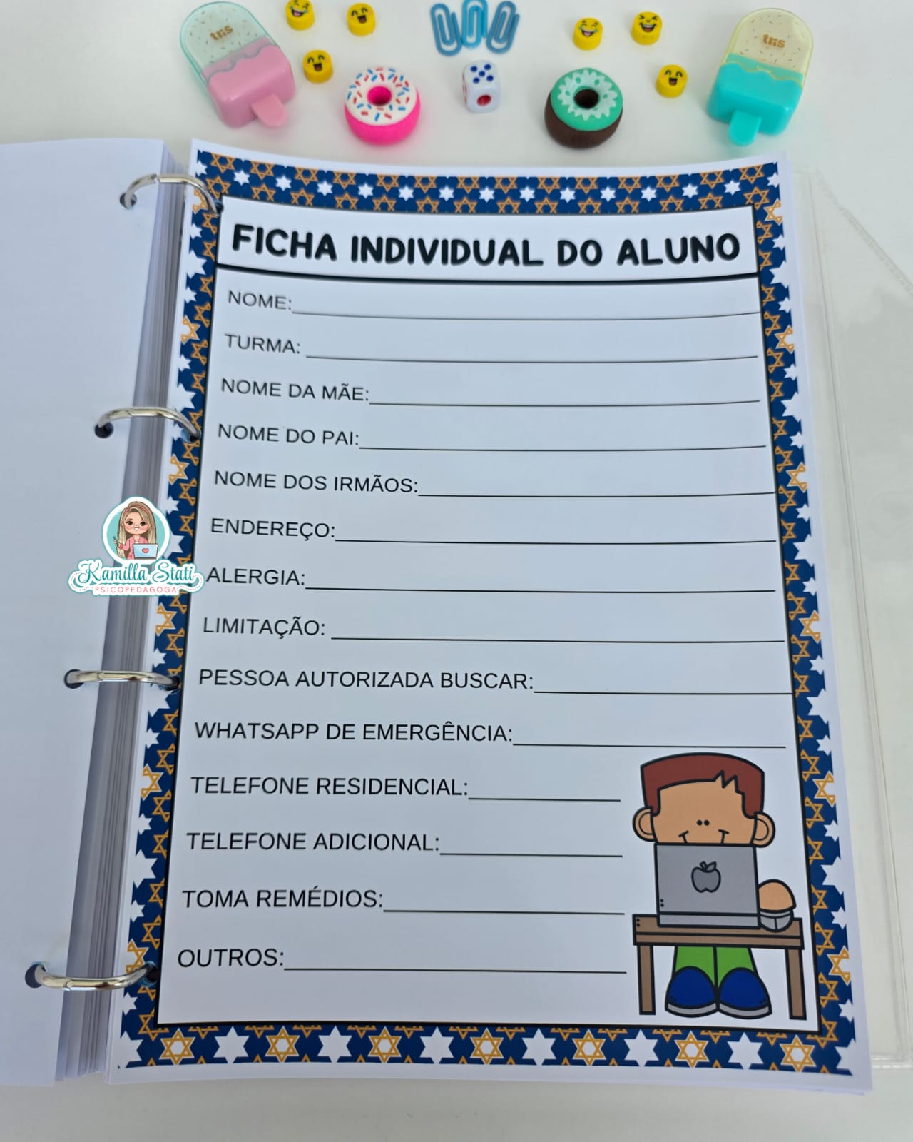 ✅ Fichas detalhadas para cada aluno: aniversários, informações individuais, tarefa de casa, trabalhos escolares, notas e comportamento.